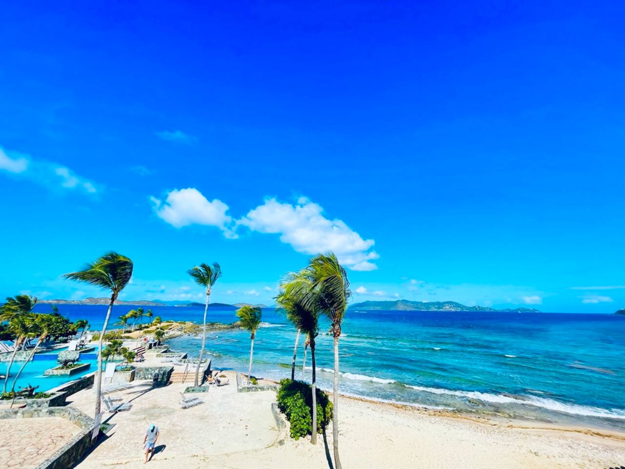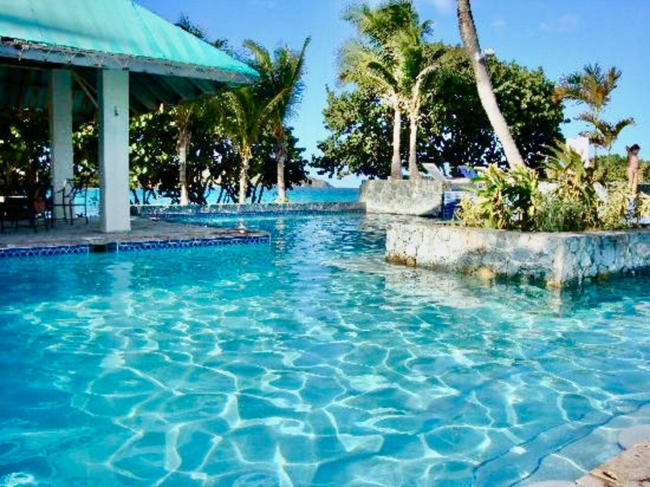 Beach was rocky in front of unit but we hung out at the beach by the Sapphire Beach Bar which was about a 200 yard short walk, but still within the condo complex Beach was nice there. Pool was good too but the pool bar was closed (doesn’t look like it has been open for a little while).