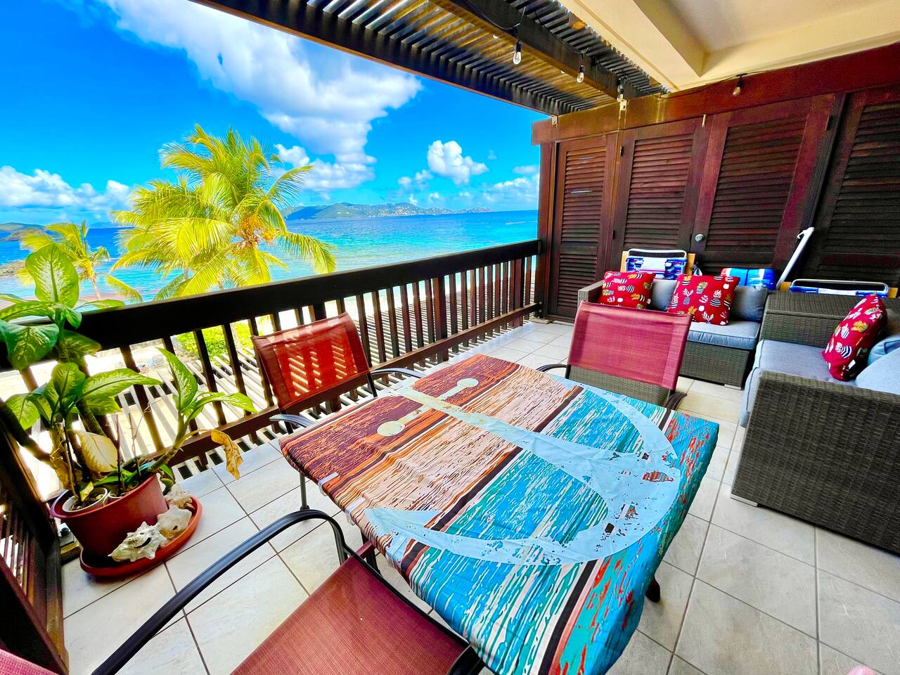 If you are looking for a centrally located condo, this is your spot! We love the close proximity to Red Hook, where we spent every night for dinner. We loved how the unit was decorated, the air conditioning, and it was fully equipped! There are pots, pans, plates, bowls, and utensils all for you to utilize! We have visited STT multiple times and this is our first one with washer/dryer which we LOVED! The views upstairs and downstairs were both breathtaking!! And great views of St. John, which is beautiful at night🤩. There was a small cooler, beach chairs, snorkel gear, and pool noodles all to use as well! Renee was great to work with and very prompt with responses. She made booking a breeze! We highly recommend her and her unit!